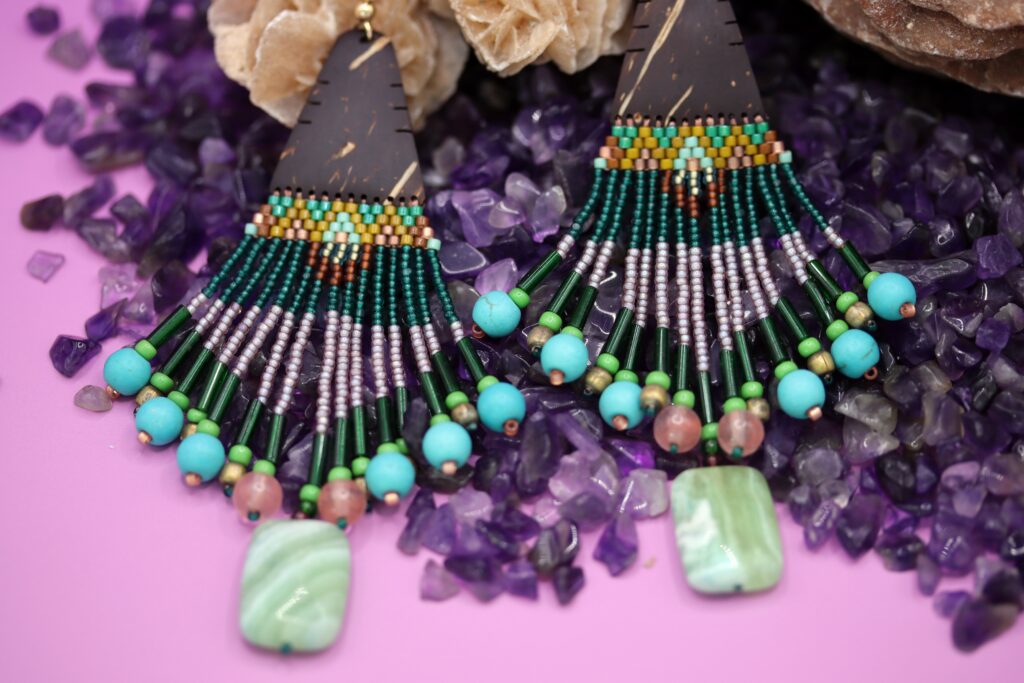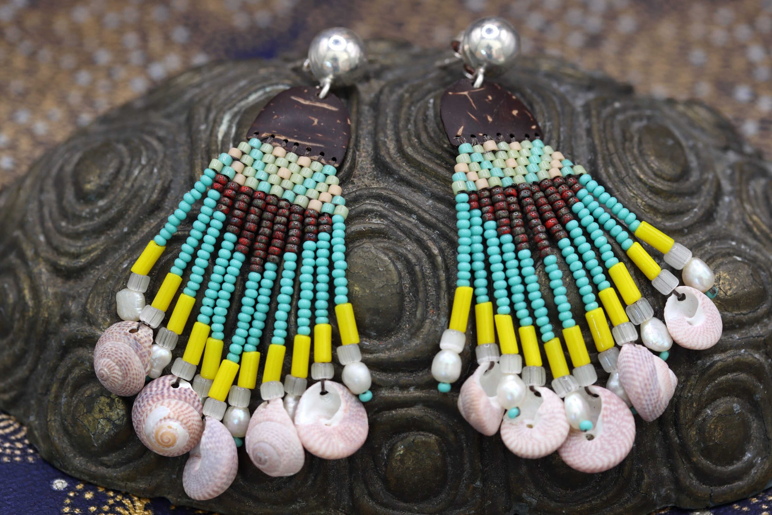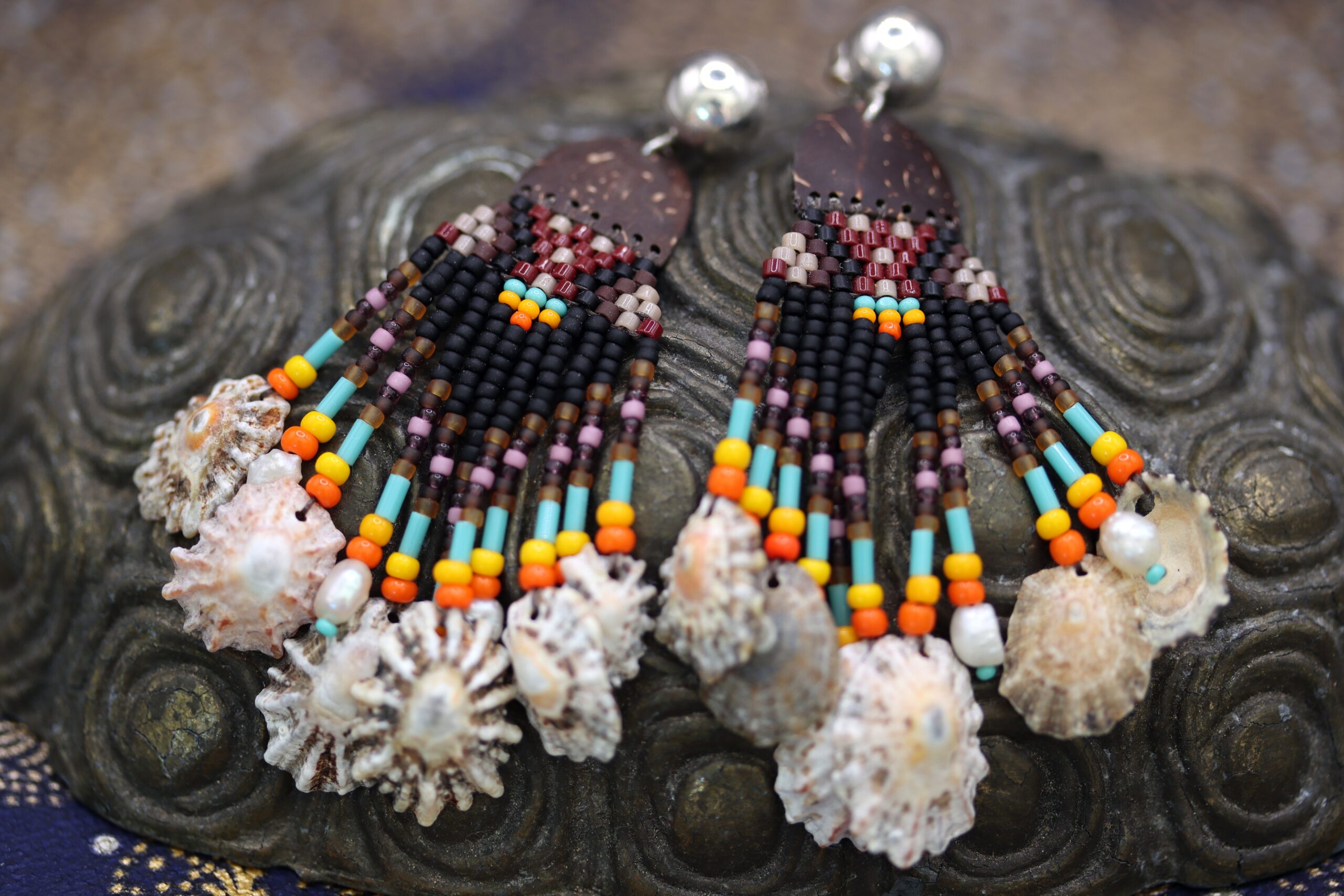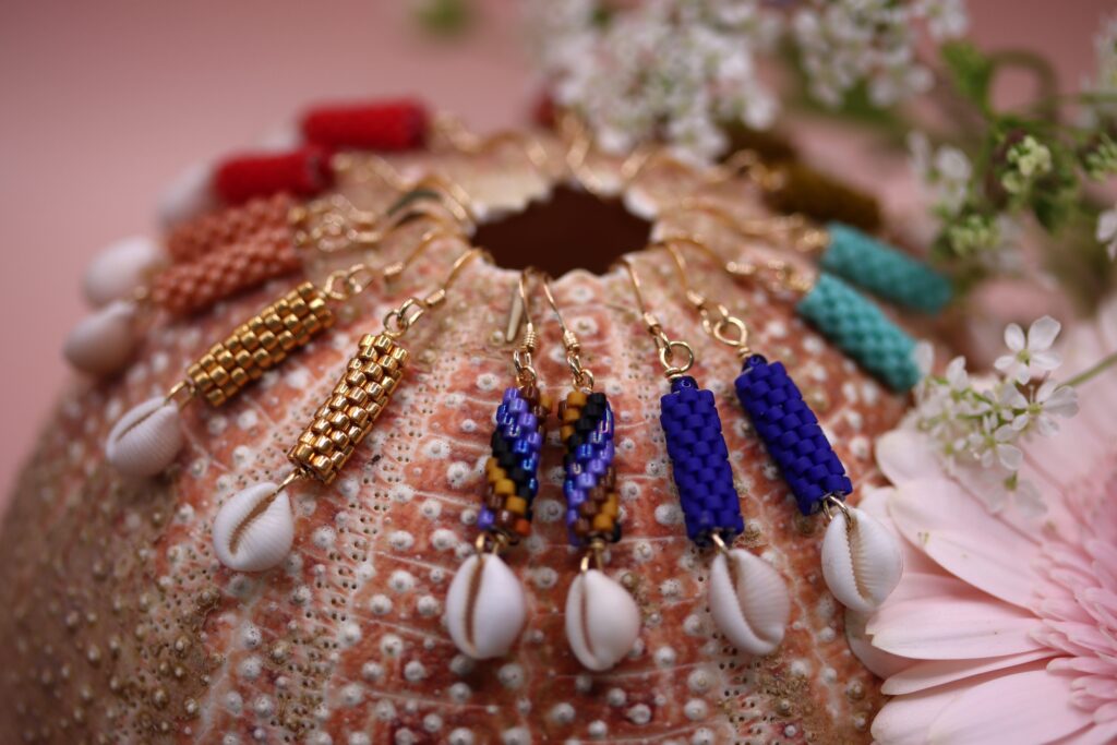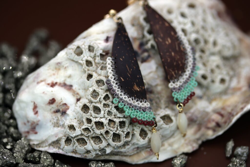 Les perles de rocailles s’unissent au bois, pierres, corail, plumes, perles de verre ou céramique. Ponctuations, harmonies colorées, contrastes, associations audacieuses et délicates, tout est possible. Laissez vous porter. Magnifique reflet de richesse intérieure. Les matières fragiles comme le corail sont chinées ce qui fait que chaque pièce est unique ou limitée à quelques exemplaires.
