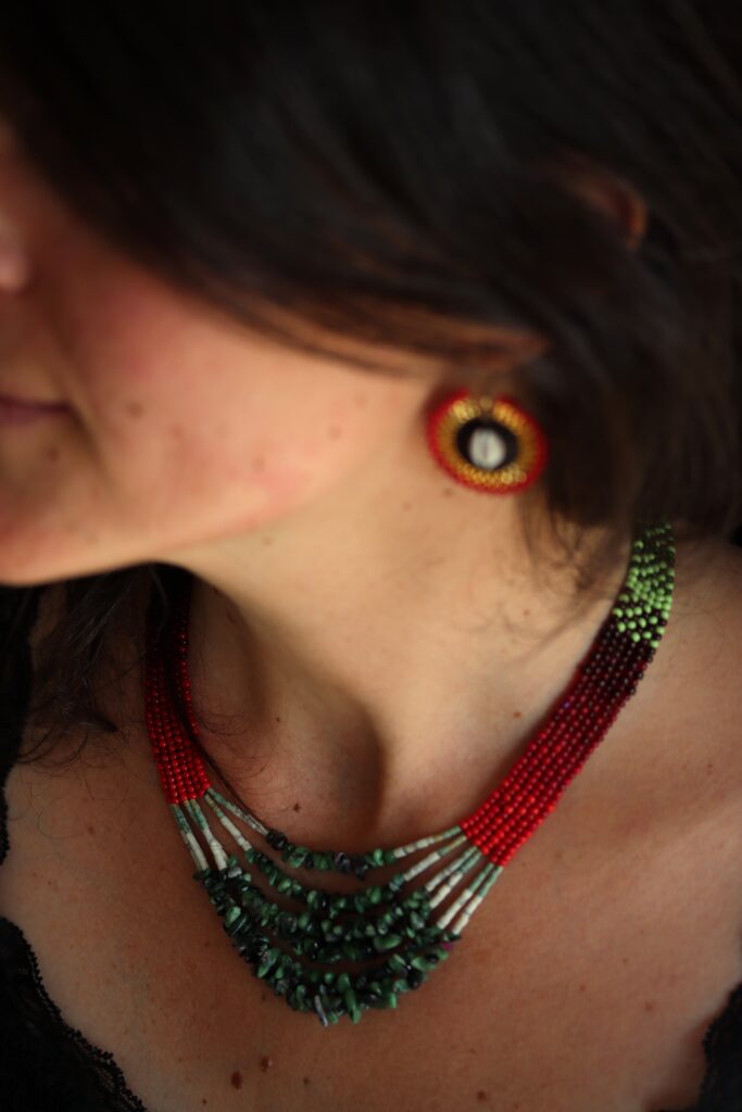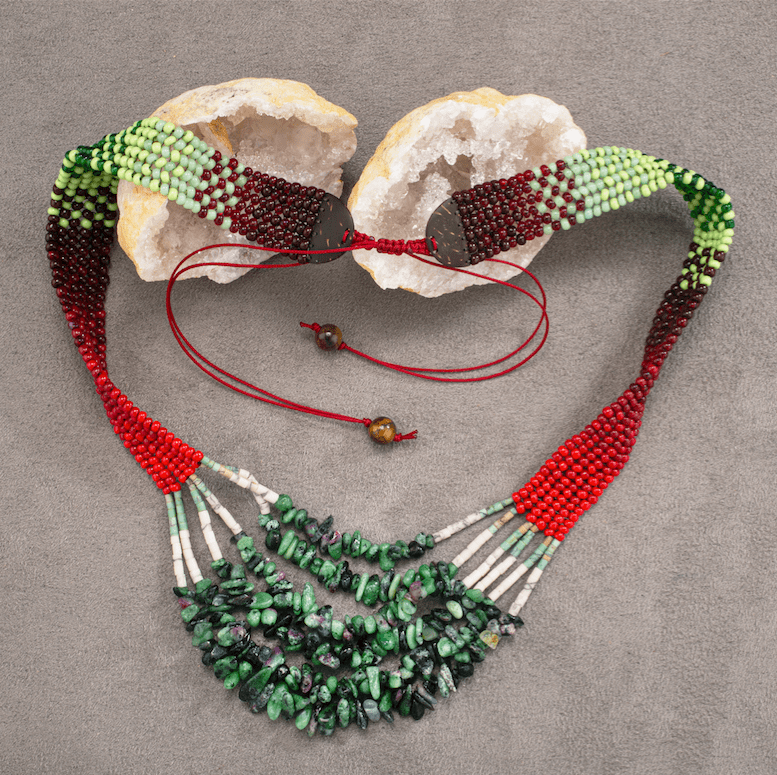 Ponctuations colorées ouvertes sur un flot de pierres gemmes.